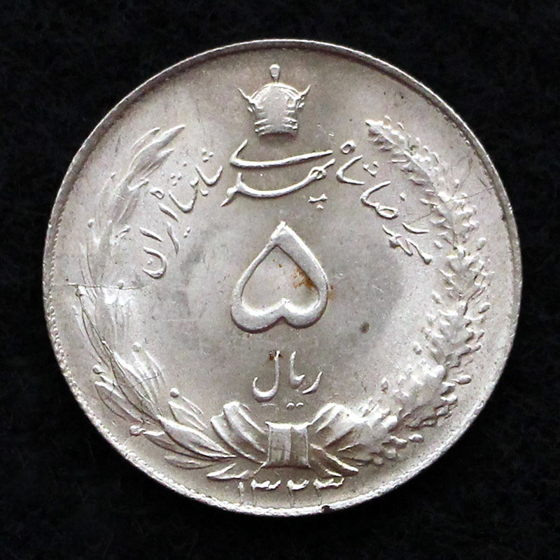 5 ریال – محمدرضا شاه پهلوی شاهنشاه ایران – برگ زیتون و بلوط – تاج – تاریخ |