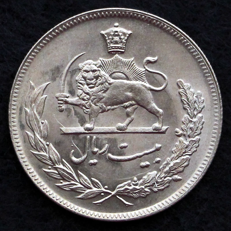 بیست ریال – شیر و خورشید – برگ زیتون و بلوط – تاج |