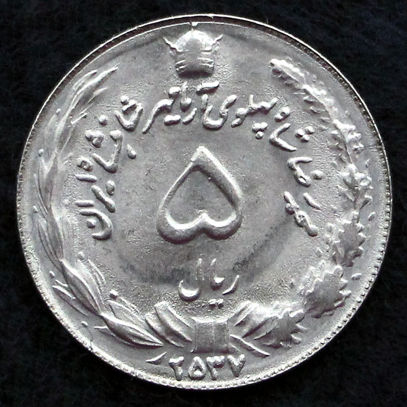 5 ریال محمدرضا شاه پهلوی 2537 – آریامهر – نیکل