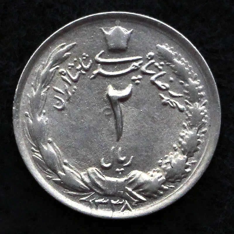 2 ریال محمدرضا شاه پهلوی 1338 – دو تاج