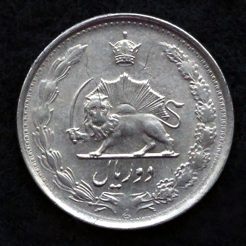 2 ریال – محمدرضا شاه پهلوی شاهنشاه ایران – برگ زیتون و بلوط – تاج – تاریخ |