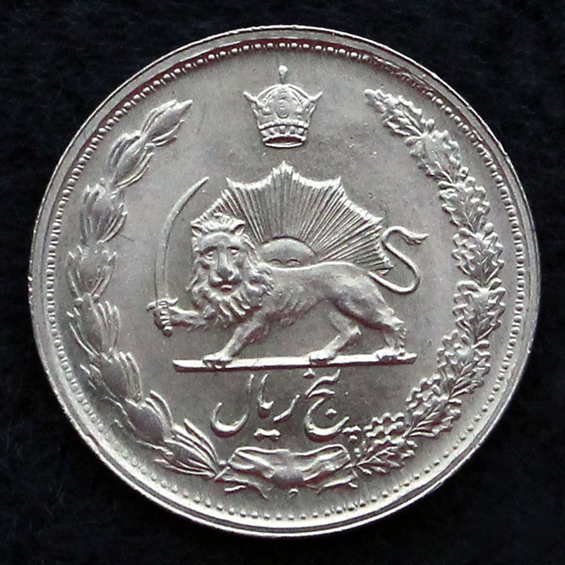 5 ریال – محمدرضا شاه پهلوی شاهنشاه ایران – برگ زیتون و بلوط – تاج – تاریخ |