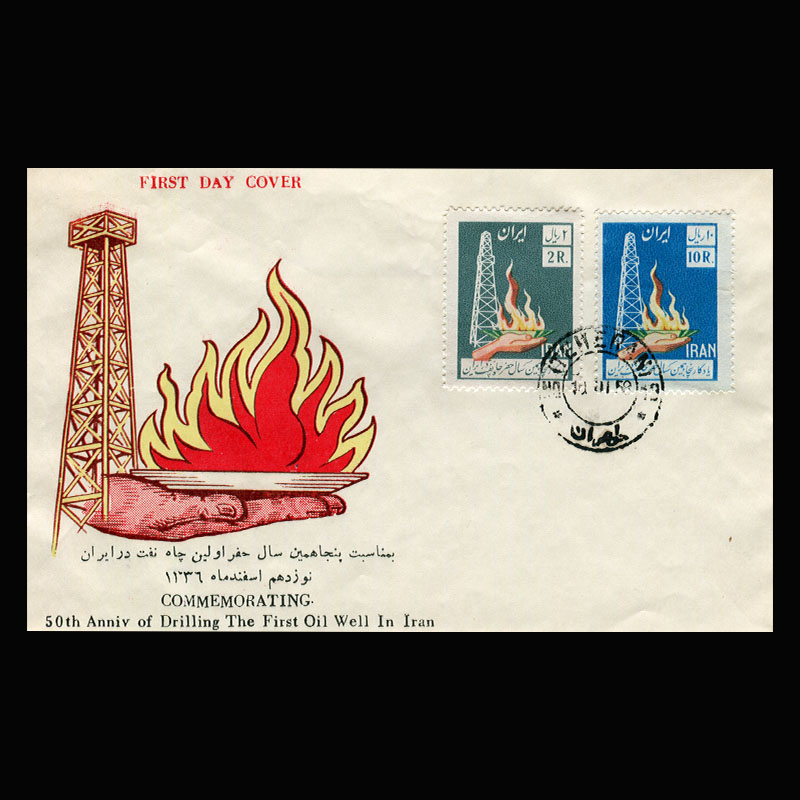 01061 – پاکت مهر روز پنجاهمین سال حفر چاه نفت ایران